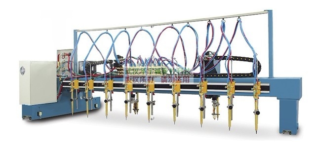 GS/Z-4000火焰多頭直條切割機(H型鋼數控切割機)HGZ-4000數控/多頭直條火焰切割機HGZ-4000型龍門式直條數控切割機屬于一款多功能型數控切割機。 當需要把一塊鋼板切割成若干個等寬直條的時候,可以在數控切割機上配以直條割炬,能一次性把鋼板切割成多個直條,有效的提高切割效率,并且能使切割時直條兩側受熱均勻,避免產生較大的熱變形。